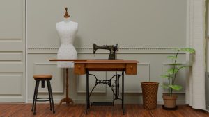 (動画)blenderを使って作った足踏みミシンとトルソのある風景